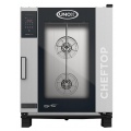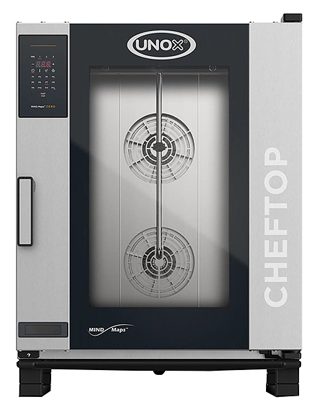 Пароконвектомат UNOX XEVC-1011-EZLM серии CHEFTOP MIND.Maps™ COUNTERTOP ZERO предназначен для стандартных процессов приготовления различных блюд на предприятиях общественного питания. Модель оснащена сенсорной панелью управления ZERO с 7-сегментным экраном, петлями справа, левой дверью и LED подсветкой, встроенной в дверь. Камера выполнена из нержавеющей стали AISI 304 с закругленными углами, окно двери - из двойного стекла.