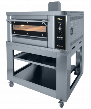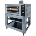 новая модель газовой печи для пиццы ППГ/1 на 4 пиццы диаметром 350 мм, выполнена полностью из нержавеющей стали(внешние и внутренние панели), оснащена 4-мя газовыми горелками с системой электронного поджига и контроля пламени, газовые горелки системы premix - быстрый переход с разных типов газа и работа печи одновременно от горелок свода и пода; управление печью осуществляется с помощью электронной панели с джойстиком, раздельная регулировка мощности тепловых потоков верхних и нижних горелок печи, натуральный подовый камень толщиной 20 мм, рабочая температура печи до 400С, г. нетто 1200х1021(1221)х1244 мм