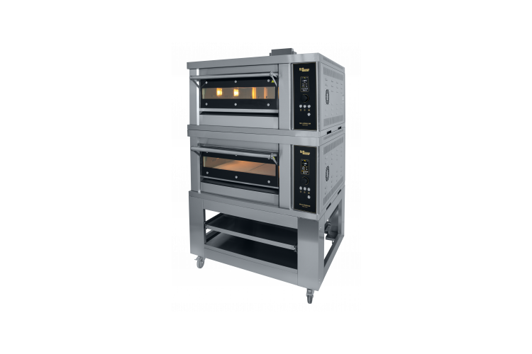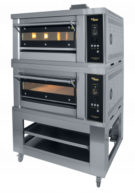 новая модель 2х секционной, модульной газовой печи для пиццы ППГ/2 на 8 пицц диаметром 350 мм, выполнена полностью из нержавеющей стали(внешние и внутренние панели), оснащена 4-мя газовыми горелками в каждой секции с системой электронного поджига и контроля пламени; управление печью осуществляется с помощью электронной панели с джойстиком, раздельная регулировка мощности тепловых потоков верхних и нижних горелок печи, натуральный подовый камень толщиной 20 мм, рабочая температура печи до 400С, г. нетто г. нетто 1200х1221х1391 мм