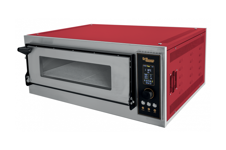 инновационная печь на 4 пиццы до 350 мм в диаметре с программируемой электронной панелью управления с большим цветным дисплеем, с системой перераспределения тепловых потоков нижних и верхних групп ТЭНов, с подсветкой в камере, дверь печи с панорамным смотровым стеклом, материал изготовления печи - полностью из нержавеющей стали(камера и облицовка), каменный под печи имеет толщину 20 мм, что вместе с мощными ТЭНами позволяет выпекать пиццу в неаполитанском стиле при температуре более 450С. Система перераспределения тепловых потоков позволяет в считанные минуты перенастроить печь под разные типы пиццы. Крыша и боковые стенки облицовки покрыты спец. покрытием вишневого цвета, размер камеры печи 720х720х140 мм, габариты нетто 1005х950х458 мм, 85кг, 8.3 кВт, 380В, габариты брутто 1095х1060х708 мм, 105 кг
