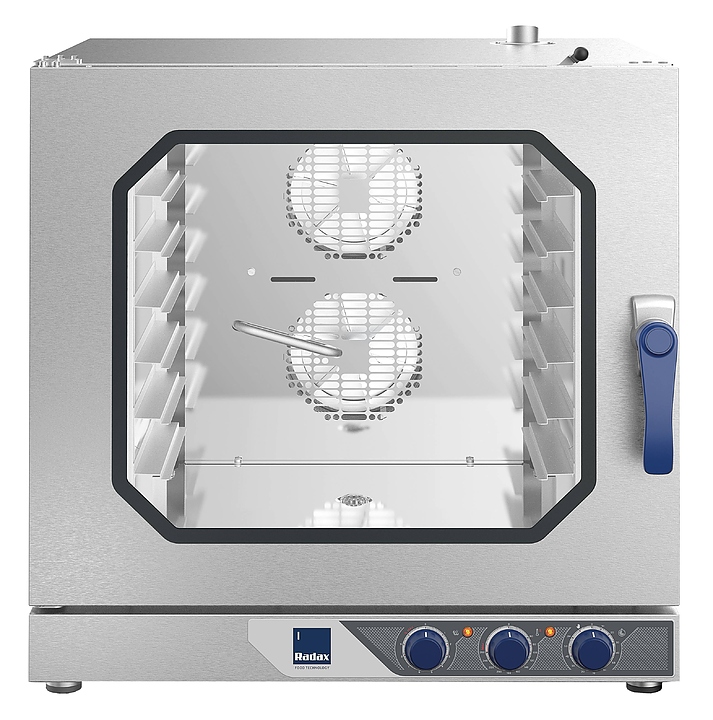 Конвекционная печь Radax CHEKHOV CC06M0 предназначена для приготовления различных блюд, выпечки хлебобулочных и кондитерских изделий на предприятиях общественного питания и торговли. Модель оснащена подсветкой, механическим управлением и дверцей с левым открыванием.