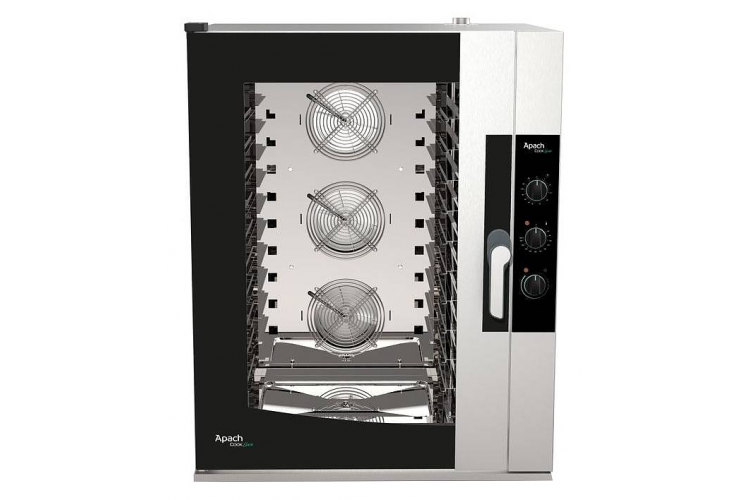 Конвекционная печь Apach AB10QM GAS предназначена для выпекания или разогрева кондитерских и хлебобулочных изделий, готовых блюд, замороженных или предварительно выдержанных в расстоечном шкафу заготовок из теста на предприятиях общественного питания и торговли. Подсветка камеры осуществляется галогеновой лампой. Камера легко чистится благодаря закругленным углам. Корпус выполнен из нержавеющей стали, дверца - из двойного закаленного стекла.