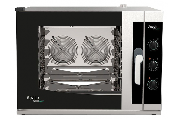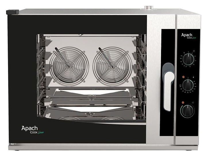 Конвекционная печь Apach AB4QM предназначена для выпекания или разогрева кондитерских и хлебобулочных изделий, готовых блюд, замороженных или предварительно выдержанных в расстоечном шкафу заготовок из теста на предприятиях общественного питания и торговли. Подсветка камеры осуществляется галогеновой лампой. Камера легко чистится благодаря закругленным углам. Корпус выполнен из нержавеющей стали, дверца - из двойного закаленного стекла.