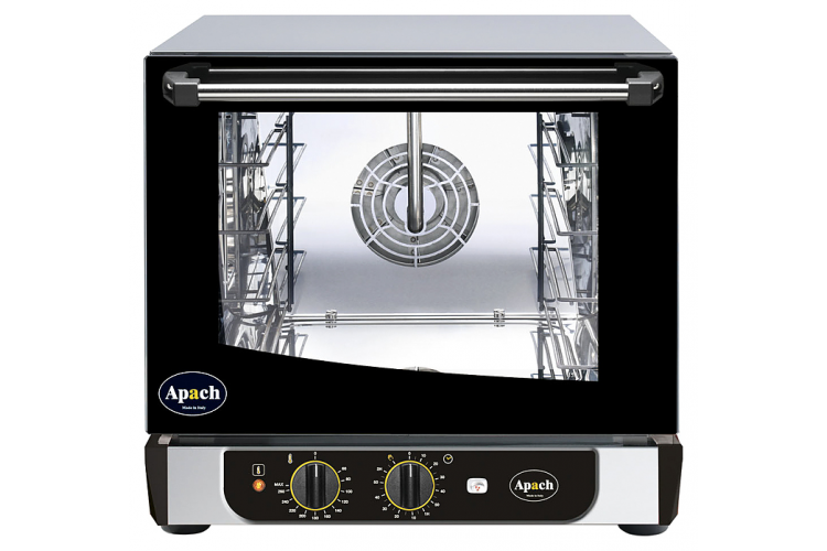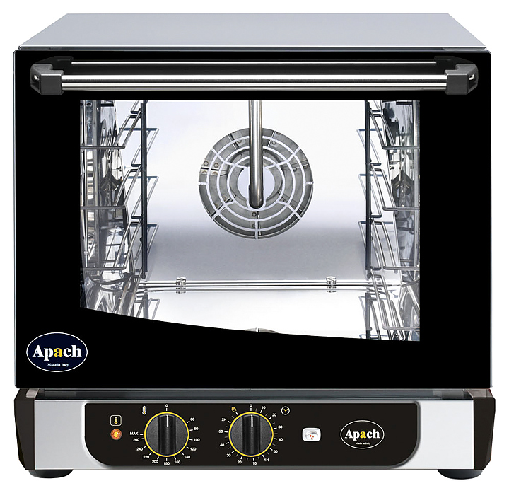 Конвекционная печь Apach AD44M предназначена для выпекания или разогрева кондитерских и хлебобулочных изделий, готовых блюд, замороженных или предварительно выдержанных в расстоечном шкафу заготовок из теста на предприятиях общественного питания и торговли. Подсветка камеры осуществляется галогеновой лампой. Камера легко чистится благодаря закругленным углам. Корпус выполнен из нержавеющей стали, дверца - из двойного закаленного стекла.