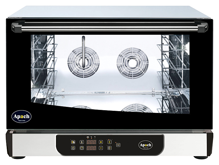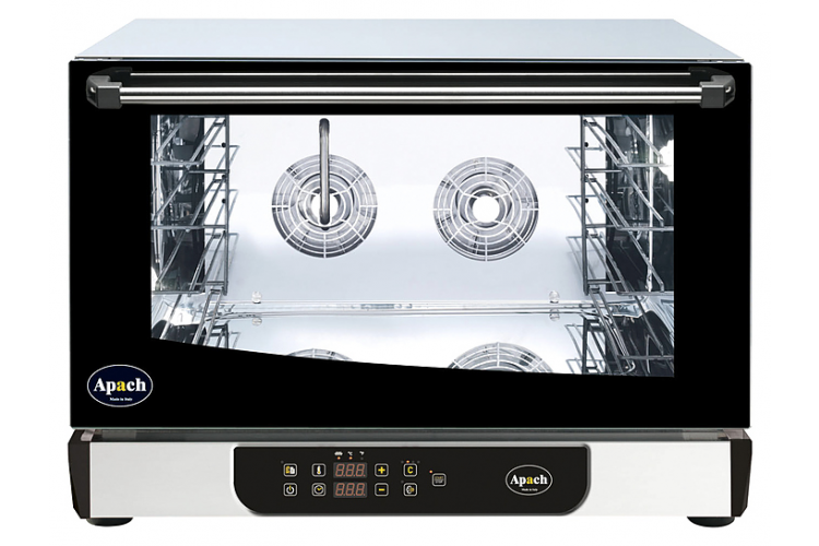 Конвекционная печь Apach AD46DI ECO предназначена для выпекания или разогрева кондитерских и хлебобулочных изделий, готовых блюд, замороженных или предварительно выдержанных в расстоечном шкафу заготовок из теста на предприятиях общественного питания и торговли. Подсветка камеры осуществляется галогеновой лампой. Корпус выполнен из нержавеющей стали, дверца - из двойного закаленного стекла.