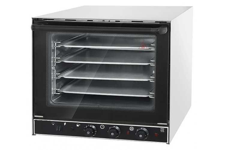 Конвекционная печь Kocateq YXD 4S предназначена для выпекания и разогрева кондитерских и хлебобулочных изделий, готовых блюд, замороженных или предварительно выдержанных в расстоечном шкафу заготовок из теста на предприятиях общественного питания и торговли, в пекарнях и кондитерских. Модель оснащена аналоговой панелью управления, таймером до 120 минут, термостатом для регулировки температуры, защитным термостатом, световыми индикаторами, подсветкой и ножками. Корпус выполнен из нержавеющей стали AISI 201, камера - из нержавеющей стали AISI 430.