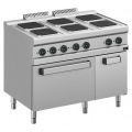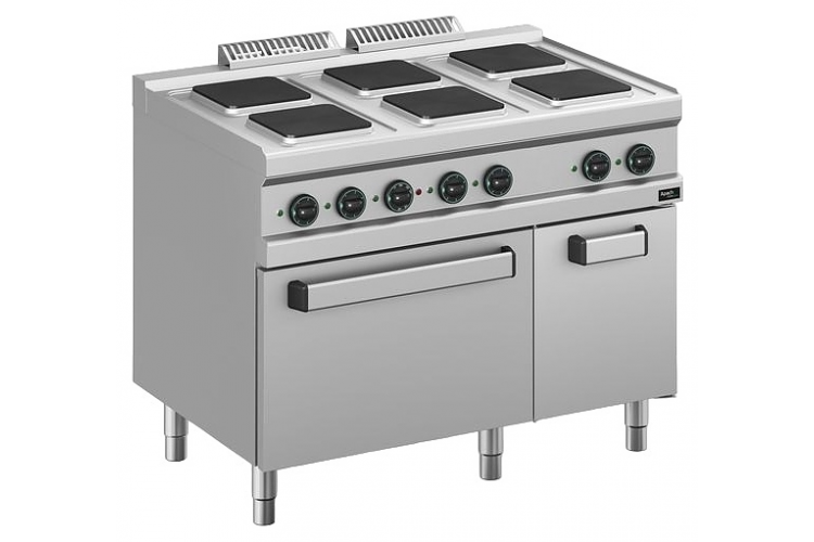 Электрическая плита Apach APRE-117FE/PL 700-й серии предназначена для приготовления различных блюд из мяса, птицы, рыбы и овощей в наплитной посуде на предприятиях общественного питания и торговли. Модель оснащена электромеханической панелью управления, быстро нагревающимися конфорками, гидроизолированной прессованной поверхностью и регулируемыми по высоте ножками. Корпус, рабочая поверхность, панель управления и вытяжная решетка выполнены из нержавеющей стали AISI 304, боковые и задняя панели - из нержавеющей стали AISI 430.