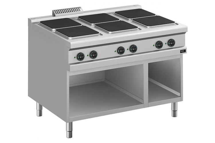 Электрическая плита Apach APRE-129P/PL 900-й серии предназначена для приготовления различных блюд из мяса, птицы, рыбы и овощей в наплитной посуде на предприятиях общественного питания и торговли. Модель оснащена электромеханической панелью управления, быстро нагревающимися конфорками, гидроизолированной прессованной поверхностью и открытой подставкой с регулируемыми по высоте ножками.