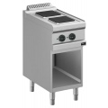Электрическая плита Apach APRE-47P/PL 700-й серии предназначена для приготовления различных блюд из мяса, птицы, рыбы и овощей в наплитной посуде на предприятиях общественного питания и торговли. Модель оснащена электромеханической панелью управления, быстро нагревающимися конфорками, гидроизолированной прессованной поверхностью и открытой подставкой с регулируемыми по высоте ножками. Корпус, рабочая поверхность, панель управления и вытяжная решетка выполнены из нержавеющей стали AISI 304, боковые и задняя панели - из нержавеющей стали AISI 430.