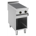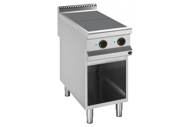 Электрическая плита Apach APRE-49QP/PL 900-й серии предназначена для приготовления различных блюд из мяса, птицы, рыбы и овощей в наплитной посуде на предприятиях общественного питания и торговли. Модель оснащена электромеханической панелью управления, быстро нагревающимися конфорками, гидроизолированной прессованной поверхностью и открытой подставкой с регулируемыми по высоте ножками. Корпус, рабочая поверхность, панель управления и вытяжная решетка выполнены из нержавеющей стали AISI 304, боковые и задняя панели - из нержавеющей стали AISI 430.