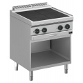 Электрическая плита Apach APRE-77QP/PL 700-й серии предназначена для приготовления различных блюд из мяса, птицы, рыбы и овощей в наплитной посуде на предприятиях общественного питания и торговли. Модель оснащена электромеханической панелью управления, быстро нагревающимися конфорками, гидроизолированной прессованной поверхностью, выдвижным лотком для сбора остатков пищи, масла и жира и открытой подставкой с регулируемыми по высоте ножками. Корпус, рабочая поверхность, панель управления и вытяжная решетка выполнены из нержавеющей стали AISI 304, боковые и задняя панели - из нержавеющей стали AISI 430.