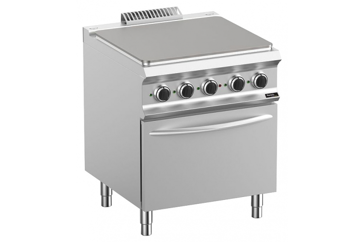 Электрическая плита Apach Chef Line GLRSTE77FEP предназначена для одновременного приготовления разных блюд в наплитной посуде. Модель оснащена сплошной поверхностью с 4 зонами закрытого концентрического нагрева, электрическим жарочным шкафом и регулируемыми по высоте ножками. Эффект изотермии позволяет дифференцировать температуру приготовления от 450 °С в центре и до 80 °С по краям. Плита выполнена из гладкой нержавеющей стали, настил - из чугуна, корпус - из нержавеющей стали AISI 304 18/10, которая отличается устойчивостью к образованию коррозии, к влажной среде и резким перепадам температуры, стойкостью к механическим повреждениям и агрессивным средствам.