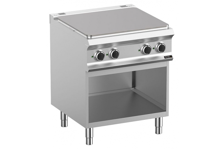Электрическая плита Apach Chef Line GLRSTE77OSP предназначена для одновременного приготовления разных блюд в наплитной посуде. Модель оснащена сплошной поверхностью с 4 зонами закрытого концентрического нагрева и регулируемыми по высоте ножками. Эффект изотермии позволяет дифференцировать температуру приготовления от 450 °С в центре и до 80 °С по краям. Настил выполнен из чугуна, корпус - из нержавеющей стали AISI 304 18/10, которая отличается устойчивостью к образованию коррозии, к влажной среде и резким перепадам температуры, стойкостью к механическим повреждениям и агрессивным средствам.