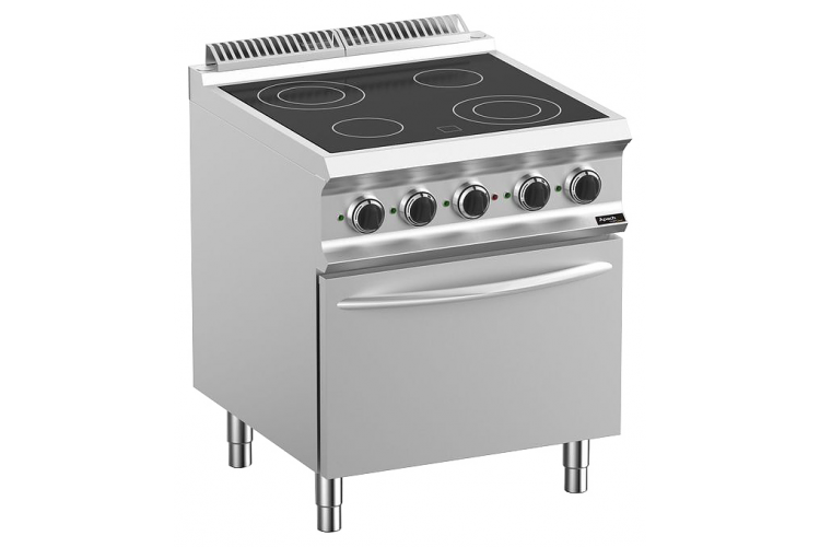 Электрическая плита Apach Chef Line GLRV77FEP предназначена для одновременного приготовления разных блюд в наплитной посуде. Модель оснащена стеклокерамической рабочей поверхностью с 4 зонами нагрева и электрическим жарочным шкафом. Тепло вырабатывается ТЭНами, расположенными снизу, и передается на поверхность посредством диффузии. Рабочая поверхность выполнена из стеклокерамики, корпус - из нержавеющей стали AISI 304 18/10, которая отличается устойчивостью к образованию коррозии, к влажной среде и резким перепадам температуры, стойкостью к механическим повреждениям и агрессивным средствам.