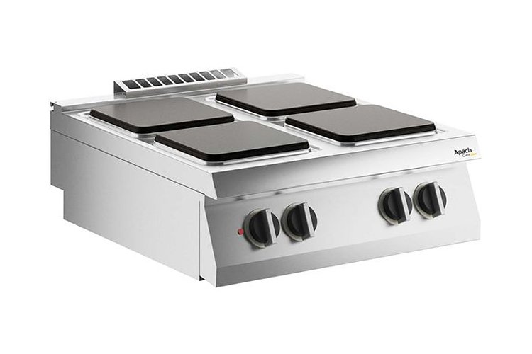 Электрическая плита Apach Chef Line SLRE87 предназначена для приготовления разных блюд в наплитной посуде. Модель оснащена 4 зонами нагрева. Конфорки выполнены из чугуна, корпус - из нержавеющей стали AISI 304, которая отличается устойчивостью к образованию коррозии, к влажной среде и резким перепадам температуры, стойкостью к механическим повреждениям и агрессивным средствам.
