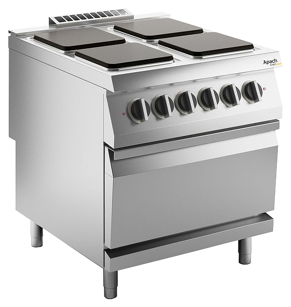 Электрическая плита Apach Chef Line SLRE89FE предназначена для приготовления разных блюд в наплитной посуде. Модель оснащена 4 зонами нагрева и электрическим жарочным шкафом. Конфорки выполнены из чугуна, корпус - из нержавеющей стали AISI 304, которая отличается устойчивостью к образованию коррозии, к влажной среде и резким перепадам температуры, стойкостью к механическим повреждениям и агрессивным средствам.
