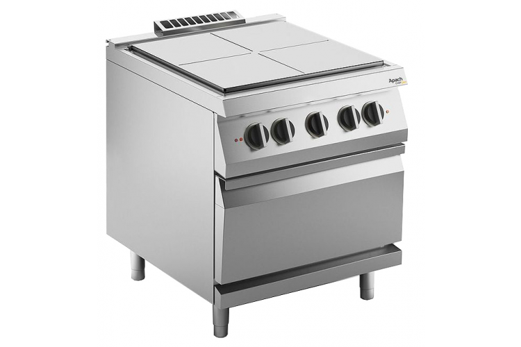 Электрическая плита Apach Chef Line SLRSTE89FE предназначена для одновременного приготовления разных блюд в наплитной посуде. Модель оснащена сплошной поверхностью с 4 зонами закрытого концентрического нагрева и электрическим жарочным шкафом. Эффект изотермии позволяет дифференцировать температуру приготовления от 450 °С в центре и до 80 °С по краям. Настил выполнен из чугуна, корпус - из нержавеющей стали AISI 304 18/10, которая отличается устойчивостью к образованию коррозии, к влажной среде и резким перепадам температуры, стойкостью к механическим повреждениям и агрессивным средствам.