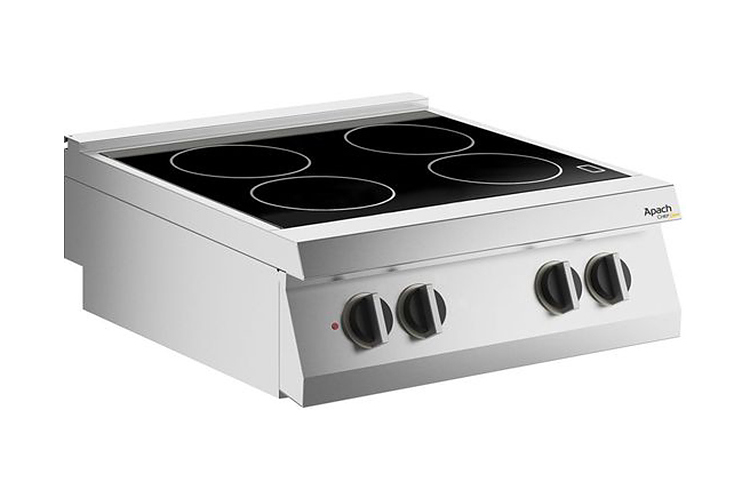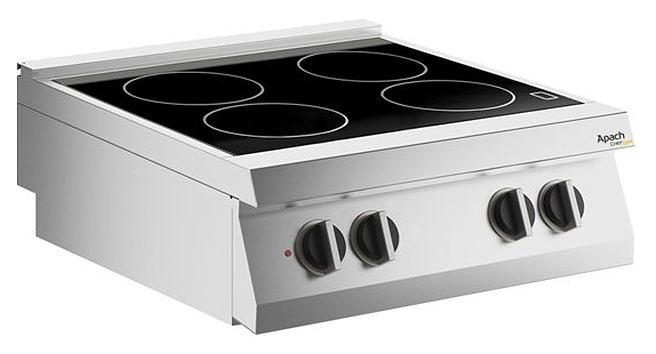 Электрическая плита Apach Chef Line SLRV87 предназначена для одновременного приготовления разных блюд в наплитной посуде. Модель оснащена стеклокерамической рабочей поверхностью с 4 зонами нагрева. Тепло вырабатывается ТЭНами, расположенными снизу, и передается на поверхность посредством диффузии. Рабочая поверхность выполнена из стеклокерамики, корпус - из нержавеющей стали AISI 304 18/10, которая отличается устойчивостью к образованию коррозии, к влажной среде и резким перепадам температуры, стойкостью к механическим повреждениям и агрессивным средствам.