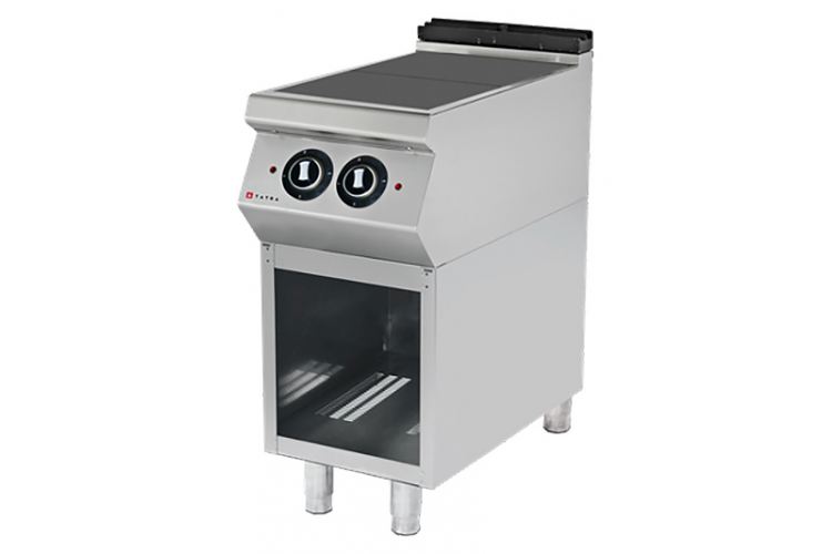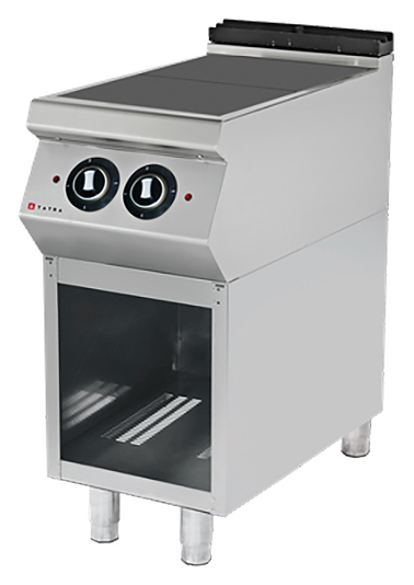 Электрическая плита Tatra TER.49F 900 серии предназначена для приготовления различных блюд в наплитной посуде на предприятиях общественного питания и торговли. Модель оснащена электромеханической панелью управления, открытой подставкой, 2 конфорками и регулируемыми ножками. Корпус выполнен из нержавеющей стали, конфорки - из чугуна.