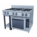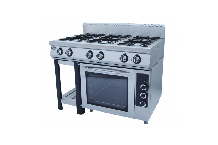 в дополнение к плите 50004 - духовка с четырьмя направляющими GN 2/1 из н/стали, расстояние между противнями 90 мм, с таймером, подсветкой, дверь духовки с закаленным стеклом: сверху в духовке ТЭН 1.5 kW, снизу ТЭН 3kW, управление температурой в духовке с помощью 2-х термостатов 50-300 С, духовка полностью из н/стали, горелки плиты 6 профессиональных горелок класса Heavy Duty , общая газовая мощность плиты 44 кВт, съемная конструкция плиты и духовки, габариты плиты с духовкой г.нетто 1180x800x1050, г.брутто: 1270х890х1250, масса 152 кг.