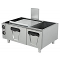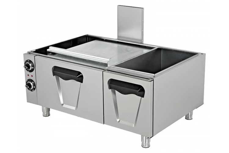 Электрический жарочный шкаф Empero EMP.PLS.9FRE02 серии 900+ предназначен для приготовления большого ассортимента блюд на предприятиях пищевой промышленности, общественного питания и торговли. Модель оснащена жарочной камерой с блоками 3 верхних и 3 нижних трубчатых электронагревателей (ТЭНов), распашной дверью, расположенной с левой стороны фронта электромеханической панелью управления с 2 поворотными переключателями и шкафом с распашной дверью для хранения инвентаря. Внутренняя облицовка камеры выполнена из высококачественной нержавеющей стали.