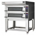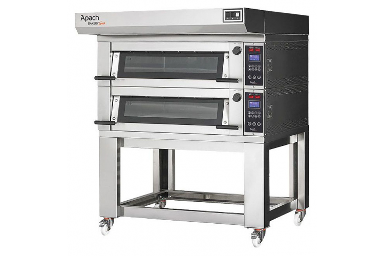 Подовая печь Apach Bakery Line E2K1L DPBI-T используется на предприятиях пищевой промышленности, общественного питания и торговли, в пекарнях и кондитерских для приготовления различных блюд, выпечки хлебобулочных и кондитерских изделий. Модель оснащена цифровой панелью управления с раздельным контролем температур (верх/низ) и подставкой на колесах. Козырек, передняя и наружная части печи выполнены из нержавеющей стали, основание - из цементного агломерата с металлическим каркасом, дверь - из стекла, каркас основания - из металла, теплоизоляция - из минеральной ваты.