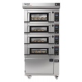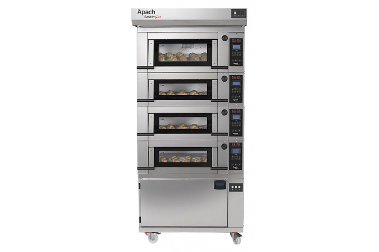 Подовая печь Apach Bakery Line E2LK3P DPBI-T используется на предприятиях пищевой промышленности, общественного питания и торговли, в пекарнях и кондитерских для приготовления различных блюд, выпечки хлебобулочных и кондитерских изделий. Модель оснащена цифровой панелью управления с раздельным контролем температур (верх/низ) и расстойкой. Козырек, передняя и наружная части печи выполнены из нержавеющей стали, основание - из цементного агломерата с металлическим каркасом, дверь - из стекла, каркас основания - из металла, теплоизоляция - из минеральной ваты.