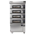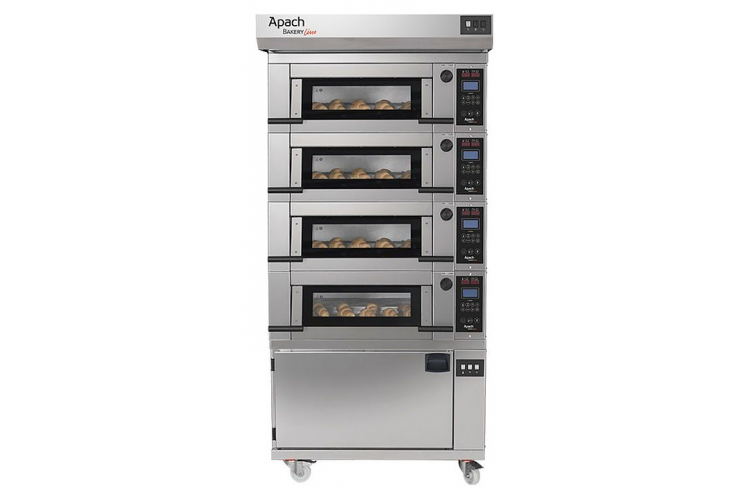 Подовая печь Apach Bakery Line E2LK5P DPBI-T используется на предприятиях пищевой промышленности, общественного питания и торговли, в пекарнях и кондитерских для приготовления различных блюд, выпечки хлебобулочных и кондитерских изделий. Модель оснащена цифровой панелью управления с раздельным контролем температур (верх/низ) и расстойкой. Козырек, передняя и наружная части печи выполнены из нержавеющей стали, основание - из цементного агломерата с металлическим каркасом, дверь - из стекла, каркас основания - из металла, теплоизоляция - из минеральной ваты.