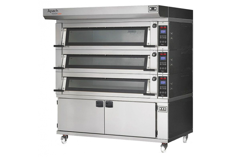 Подовая печь Apach Bakery Line E4LK6P DPBI-T используется на предприятиях пищевой промышленности, общественного питания и торговли, в пекарнях и кондитерских для приготовления различных блюд, выпечки хлебобулочных и кондитерских изделий. Модель оснащена цифровой панелью управления с раздельным контролем температур (верх/низ) и расстойкой. Козырек, передняя и наружная части печи выполнены из нержавеющей стали, основание - из цементного агломерата с металлическим каркасом, дверь - из стекла, каркас основания - из металла, теплоизоляция - из минеральной ваты.