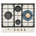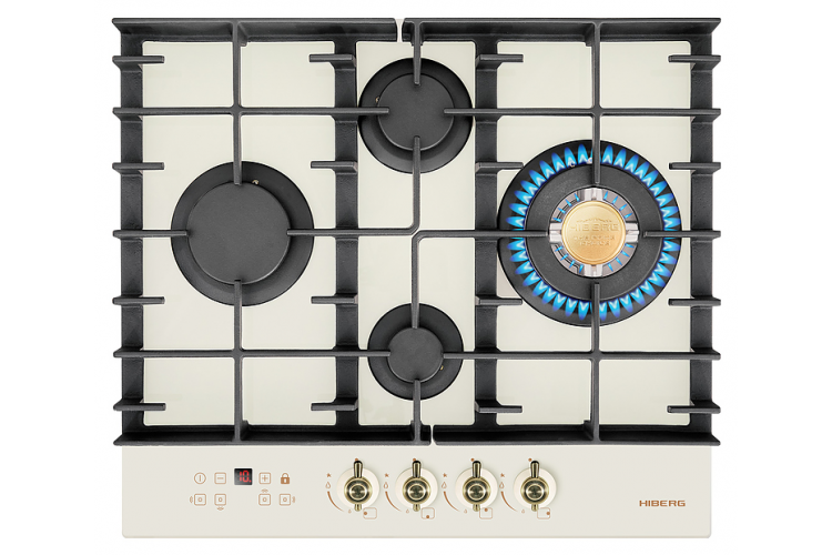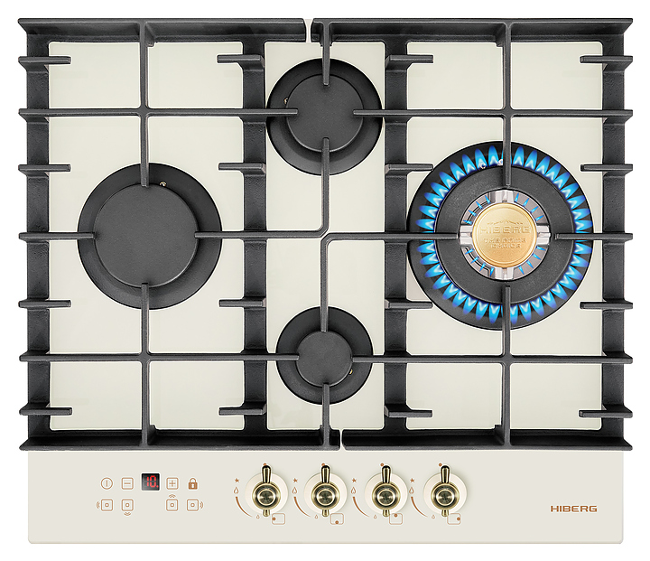Газовая варочная панель Hiberg VM 6145 RY предназначена для приготовления большого ассортимента блюд в домашних условиях. Модель оснащена 4 высококачественными конфорками различной мощности, 2 решетками, кабелем питания и фронтальной электромеханической панелью управления с 4 поворотными переключателями, сенсорной клавиатурой и светодиодным цифровым дисплеем с красной подсветкой индикации. Корпус выполнен из стали, рабочая поверхность – из высококачественного закаленного стекла бежевого оттенка, решетки – из чугуна с черной поверхностью, цилиндрические ручки переключатей – из металла с серебристой поверхностью, фигурные ручки переключателей – из металла с поверхностью бронзового оттенка на бежевом основании.