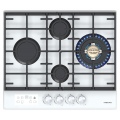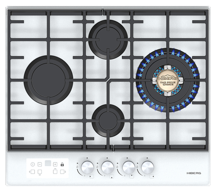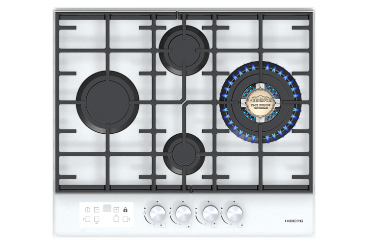 Газовая варочная панель Hiberg VM 6245 W предназначена для приготовления большого ассортимента блюд в домашних условиях. Модель оснащена 4 высококачественными конфорками различной мощности, 2 решетками, кабелем питания и фронтальной электромеханической панелью управления с 4 поворотными переключателями, сенсорной клавиатурой и светодиодным цифровым дисплеем с красной подсветкой индикации. Корпус выполнен из стали, рабочая поверхность – из высококачественного закаленного стекла белого цвета с матовой поверхностью, решетки – из чугуна с черной поверхностью, цилиндрические ручки переключатей – из металла с серебристой поверхностью.