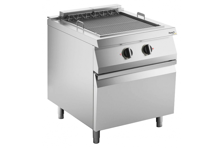 Электрический гриль Apach Chef Line SLGE87CS используется в составе тепловой линии 700 или самостоятельно на предприятиях общественного питания и торговли для обжарки мяса, рыбы и овощей. Модель оснащена съемным контейнером для воды, расположенным под нагревательными элементами, и закрытой подставкой с регулируемыми ножками. Корпус выполнен из нержавеющей стали AISI 304, рабочая поверхность – из чугуна.