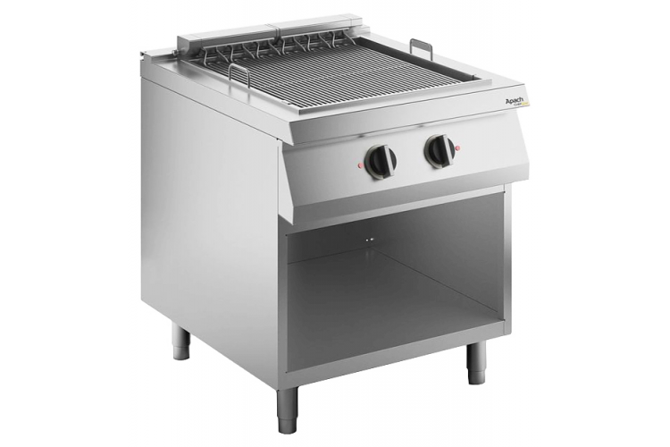 Электрический гриль Apach Chef Line SLGE89OS используется в составе тепловой линии 900 или самостоятельно на предприятиях общественного питания и торговли для обжарки мяса, рыбы и овощей. Модель оснащена съемным контейнером для воды, расположенным под нагревательными элементами, и открытой подставкой с регулируемыми ножками. Корпус выполнен из нержавеющей стали AISI 304, рабочая поверхность – из чугуна.