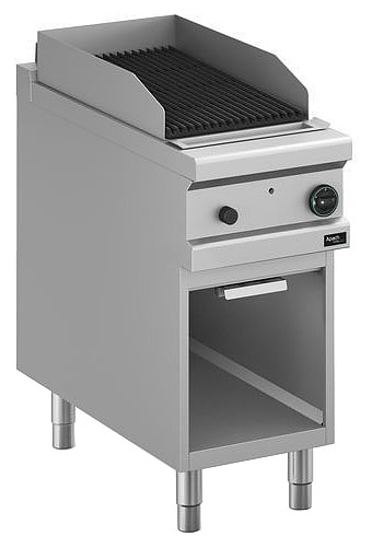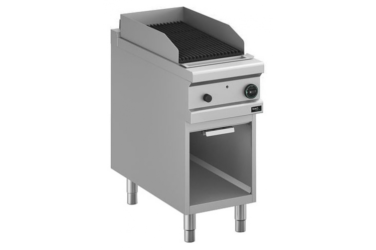 Лавовый гриль Apach APGG-49P/PL 900-й серии предназначен для обжарки мяса, рыбы и овощей на предприятиях общественного питания и торговли. Модель с бортами оснащена горелкой с пьезоэлектрическим поджигом и системой стабилизации пламени, съемным лотком для сбора остатков пищи, масла и жира и открытой подставкой с регулируемыми по высоте ножками. Корпус, панель управления и вытяжная решетка выполнены из нержавеющей стали AISI 304, боковые и задняя панели - из нержавеющей стали AISI 430, горелка и лоток - из нержавеющей стали, рабочая поверхность – из чугуна.
