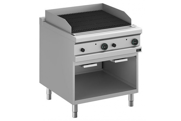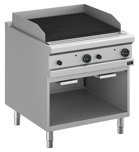 Лавовый гриль Apach APGG-89P/PL 900-й серии предназначен для обжарки мяса, рыбы и овощей на предприятиях общественного питания и торговли. Модель с бортами оснащена горелками с пьезоэлектрическим поджигом и системой стабилизации пламени, съемными лотками для сбора остатков пищи, масла и жира и открытой подставкой с регулируемыми по высоте ножками. Корпус, панель управления и вытяжная решетка выполнены из нержавеющей стали AISI 304, боковые и задняя панели - из нержавеющей стали AISI 430, горелки и лотки - из нержавеющей стали, рабочая поверхность – из чугуна.