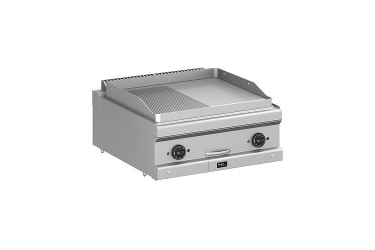 Жарочная поверхность Apach APTE-77TLR/PL 700-й серии предназначена для обжарки мяса, рыбы и овощей на предприятиях общественного питания и торговли. Модель с закругленными краями и бортами оснащена электромеханической панелью управления с терморегулятором и 2 световыми индикаторами и выдвижным лотком для сбора остатков пищи, масла и жира. Корпус, панель управления и вытяжная решетка выполнены из нержавеющей стали AISI 304, рабочая поверхность - из конструкционной стали, боковые и задняя панели - из нержавеющей стали AISI 430, лоток - из нержавеющей стали.