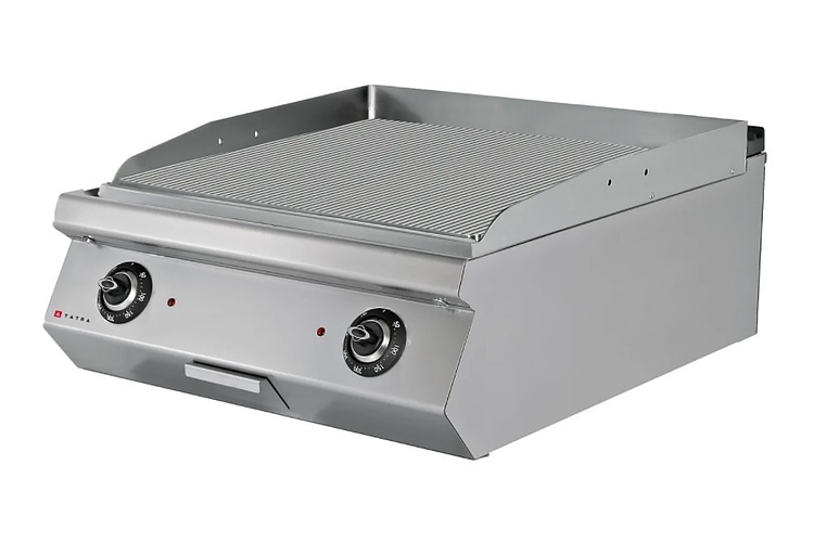 Жарочная поверхность Tatra TET.87R предназначена для жарки мяса, птицы, рыбы, овощей и быстрого разогрева полуфабрикатов на предприятиях общественного питания и торговли. Модель оснащена электромеханической панелью управления с термостатом, регулируемыми ножками, 2 зонами нагрева с независимой регулировкой и съемной емкостью для сбора жира. Корпус выполнен из нержавеющей стали.