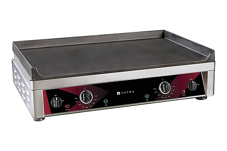 Жарочная поверхность Tatra TGP 6845 S предназначена для жарки мяса, птицы, рыбы, овощей и быстрого разогрева полуфабрикатов на предприятиях общественного питания и торговли. Модель оснащена электромеханической панелью управления с терморегулятором и индикаторами питания и нагрева, системой независимого управления каждой зоной нагрева и емкостью для сбора жира. Корпус выполнен из нержавеющей стали.