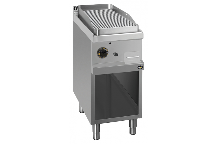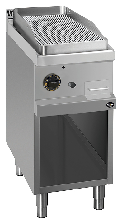 Открытая газовая сковорода Apach APTG-47PR 700-й серии предназначена для обжарки мяса, рыбы и овощей на предприятиях общественного питания и торговли. Модель с закругленными краями и бортами оснащена электромеханической панелью управления с терморегулятором, горелкой с пьезоэлектрическим поджигом и системой стабилизации пламени, выдвижным лотком для сбора остатков пищи, масла и жира и открытой подставкой с регулируемыми по высоте ножками.