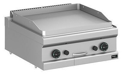 Открытая газовая сковорода Apach APTG-77TL/PL 700-й серии предназначена для обжарки мяса, рыбы и овощей на предприятиях общественного питания и торговли. Модель с закругленными краями и бортами оснащена электромеханической панелью управления с 2 терморегуляторами, горелками с пьезоэлектрическим поджигом и системой стабилизации пламени и выдвижным лотком для сбора остатков пищи, масла и жира. Корпус, панель управления и вытяжная решетка выполнены из нержавеющей стали AISI 304, рабочая поверхность - из конструкционной стали, боковые и задняя панели - из нержавеющей стали AISI 430, лоток и горелка - из нержавеющей стали.