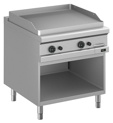 Открытая газовая сковорода Apach APTG-89PLR/PL 900-й серии предназначена для обжарки мяса, рыбы и овощей на предприятиях общественного питания и торговли. Модель с закругленными краями и бортами оснащена электромеханической панелью управления с 2 терморегуляторами, горелками с пьезоэлектрическим поджигом и системой стабилизации пламени, выдвижным лотком для сбора остатков пищи, масла и жира и открытой подставкой с регулируемыми по высоте ножками.