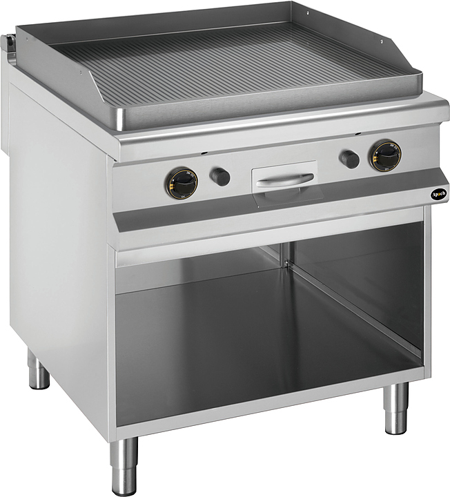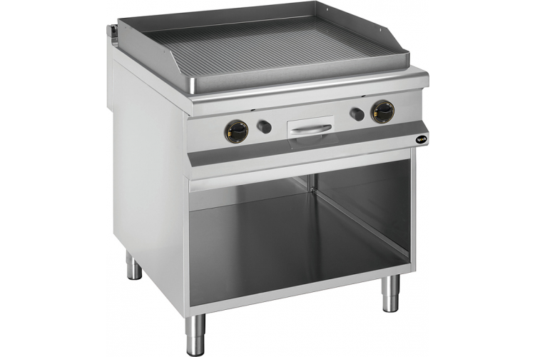 Открытая газовая сковорода Apach APTG-89PR/PL 900-й серии предназначена для обжарки мяса, рыбы и овощей на предприятиях общественного питания и торговли. Модель с закругленными краями и бортами оснащена электромеханической панелью управления с 2 терморегуляторами, горелками с пьезоэлектрическим поджигом и системой стабилизации пламени, выдвижным лотком для сбора остатков пищи, масла и жира и открытой подставкой с регулируемыми по высоте ножками.